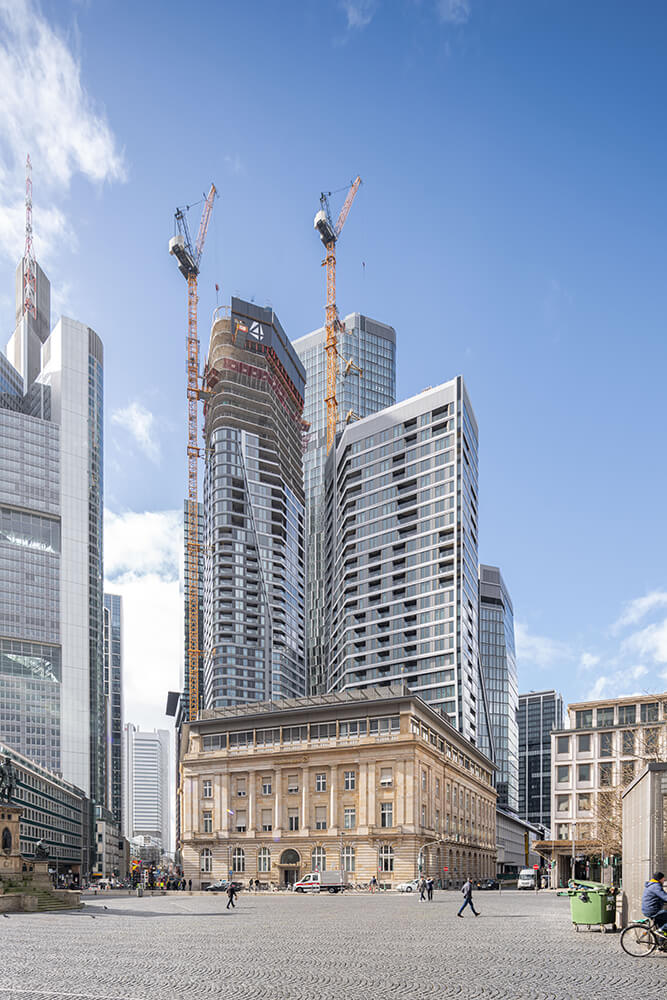 Deutsche Bank Triangle, znany również jako FOUR Frankfurt, to duży projekt nieruchomościowy w samym sercu Frankfurtu nad Menem. Projekt obejmuje budowę czterech imponujących wieżowców, które znacząco ukształtują krajobraz Frankfurtu o wysokości 233, 179, 128 i 104 metrów. Najwyższa wieża będzie trzecim najwyższym budynkiem w Niemczech, a także będzie oferować najwyższe piętro użytkowe we Frankfurcie. Deutsche Bank, jeden z największych banków w Niemczech, jest inicjatorem tego ambitnego projektu budowlanego. Cztery wieżowce, które nadają temu projektowi nazwę, są częścią większej koncepcji rozwoju urbanistycznego mającej na celu odnowienie i wzbogacenie panoramy Frankfurtu. Oprócz wieżowców, projekt obejmuje również publiczne place i tarasy na dachach, tereny zielone i udogodnienia mające na celu poprawę jakości życia w okolicy.