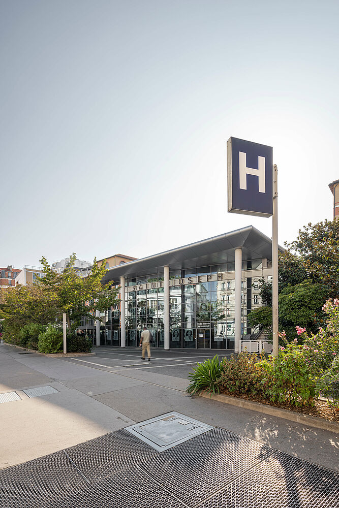 Położony przy Rue Losserand w 14-tej dzielnicy Paryża, kompleks szpitalny Saint-Joseph, charakteryzuje się wyjątkowymi połączeniami komunikacyjnymi. 13-ta linia metra, która przebiega sześć metrów pod ulicą, to tylko jeden z wielu dostępnych środków transportu publicznego. Jednak budowa nowego budynku dla szpitalnego oddziału ratunkowego, postawiła wszystkich zaangażowanych w projekt, przed problemem związanym z hałasem - właśnie ze względu na istniejącą infrastrukturę. Z uwagi na bardzo ograniczoną przestrzeń spowodowaną, gęstą zabudową, rozbudowa nie mogła zostać zrealizowana nigdzie indziej niż w piwnicy i parterze, bezpośrednio na skraju tras komunikacyjnych. W rezultacie nie było innej możliwości, w zakresie planowania, niż zlokalizowanie pomieszczeń dla personelu w odległości mniejszej niż trzy metry od tunelu metra.